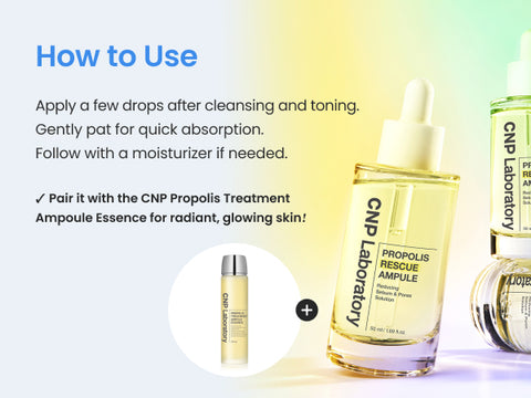 - *** CNP LABORATORY PROPOLIS RESCUE AMPULE *** This ampoule offers care for dead skin cells and sebum, and helps soothe irritated skin.