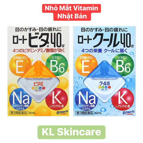 2️⃣ Rohto xanh 12mL – Làm dịu, mát mắt, giảm đỏ; nhỏ 1–2 giọt, 2–3 lần/ngày 💙
